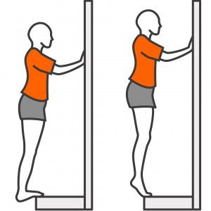 Lean gently into the wall until you feel a stretch in the upper calf.