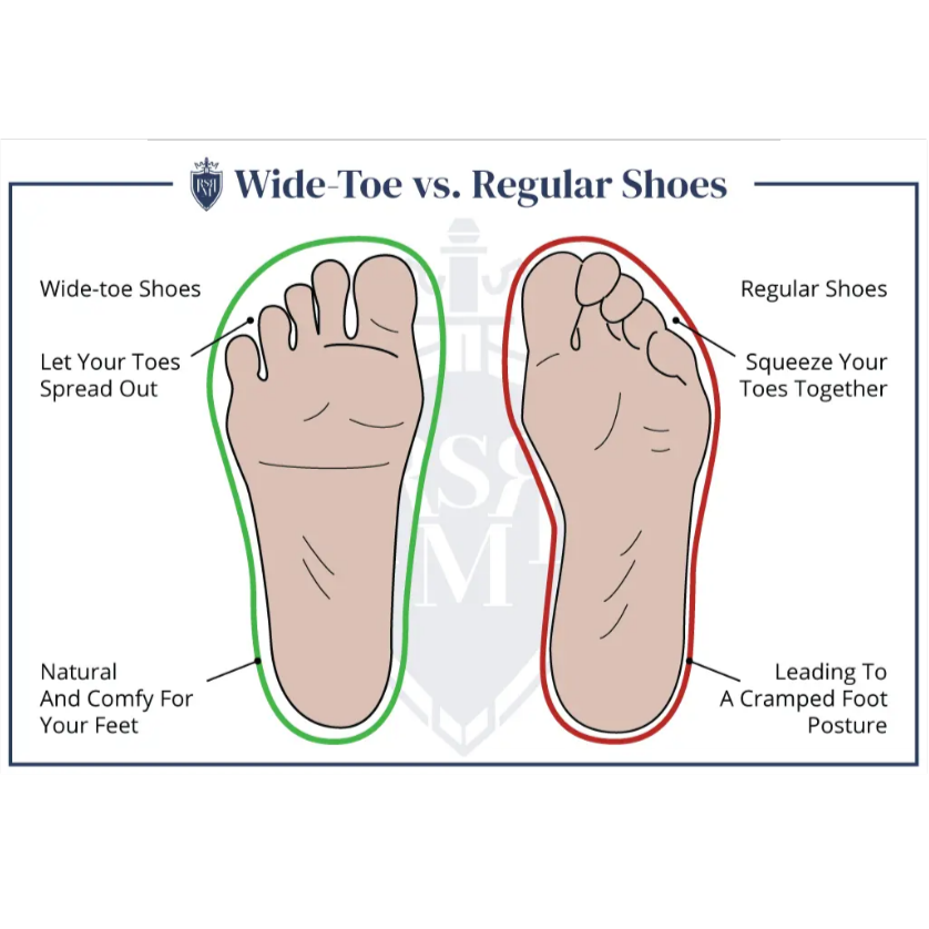 Shoes that are the correct length but too narrow can be just as damaging as shoes that are too short. Narrow toe boxes compress the forefoot, forcing toes into unnatural positions and increasing pressure across joints and soft tissue.